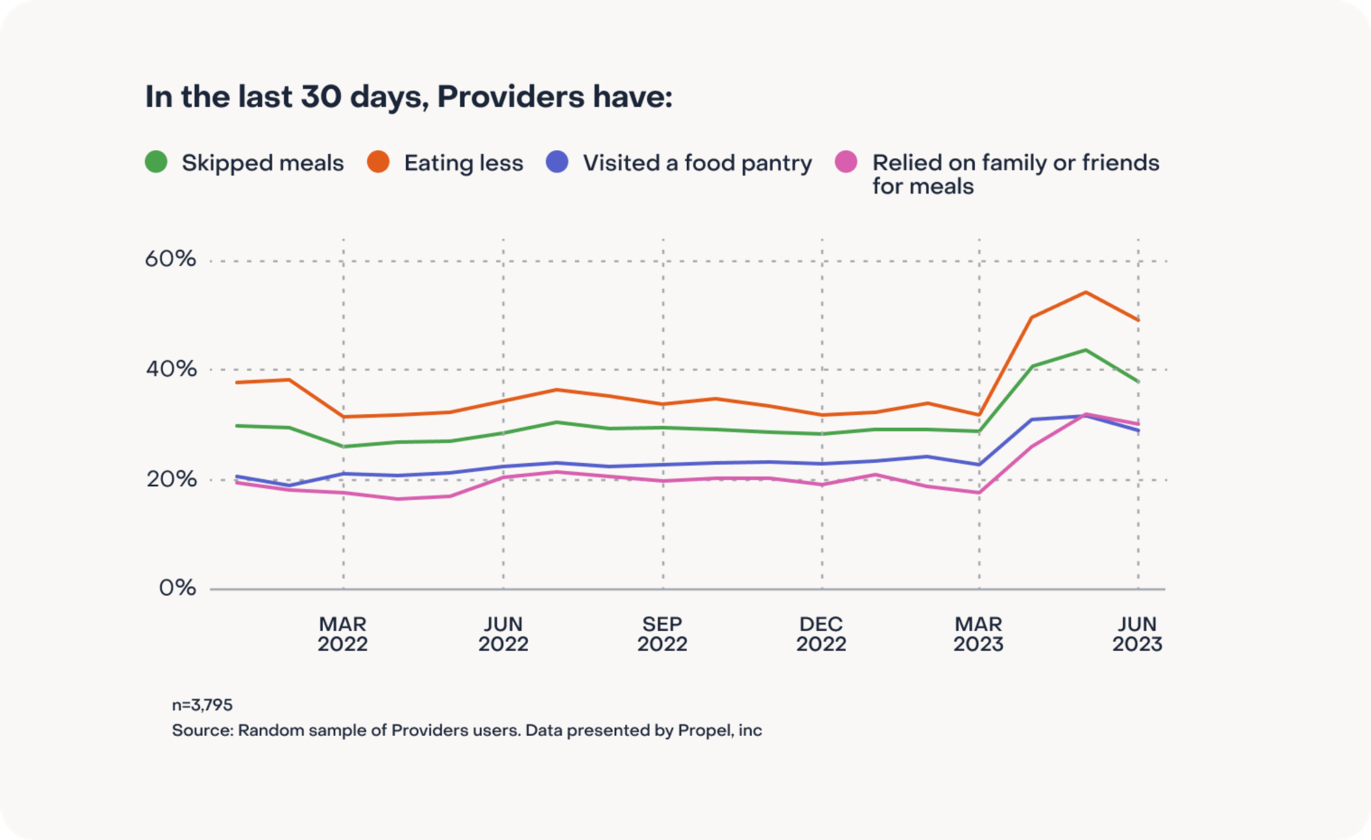 The following insights come from a 10-minute multiple choice and open response survey conducted by Propel to a random sample of 3,795 of over 5M Propel users from June 1 - June 14, 2023. All respondents are EBT cardholders.