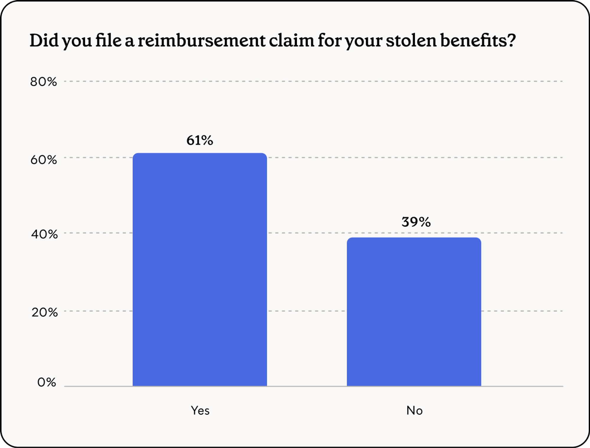 - 39% of victims did not file for reimbursement—65% of whom said they didn’t know they could file