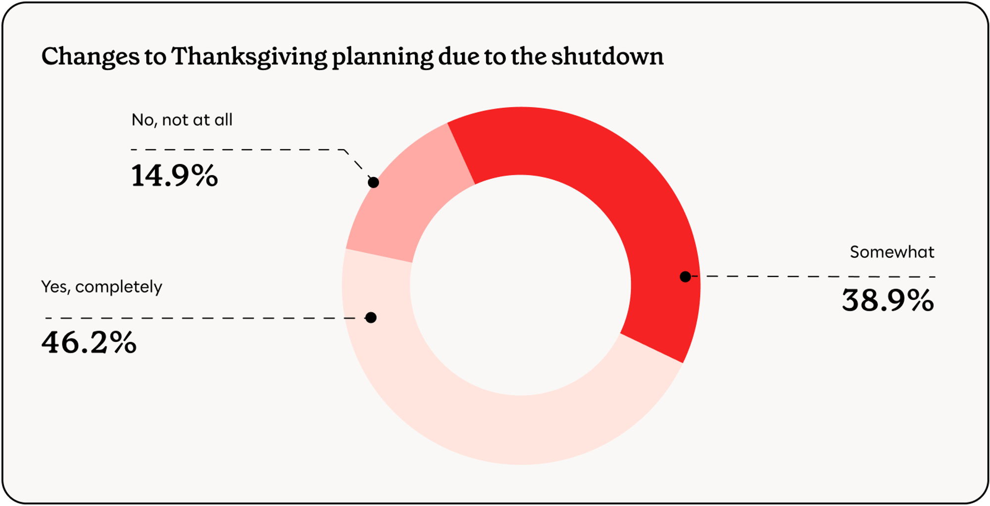 The shutdown didn’t just strain budgets, it reshaped holiday traditions. 46.2% of families say it completely changed their Thanksgiving plans: